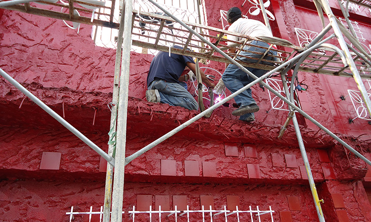 海安路的裝置藝術都是置放在街頭,容易因風吹雨打或人為破壞而修補或換新,2012年10月底,海安路又有新作品出現,這是由晉暉建設/一逸建設贊助,聘請神農街鳳凰特區藝術工作室的廖小樹老師,在一面紅牆上,用70件45乘以45公分的藝術鐵花窗所拼接而成的,命名為『鐵花開了』。